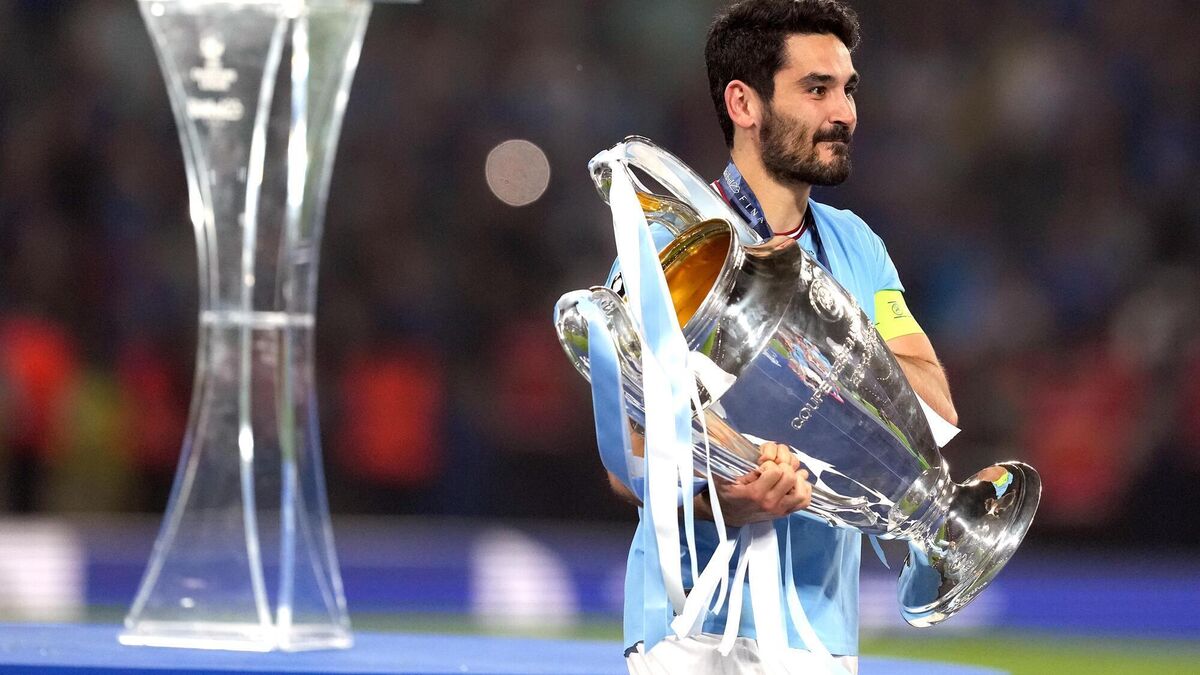 BARCA BOUND: Manchester City's Ilkay Gundogan with the UEFA Champions League Trophy.