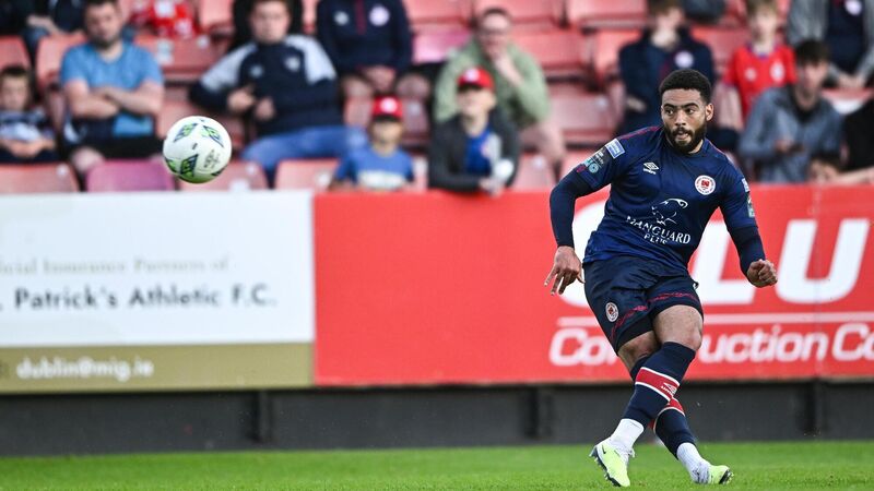 STUNNER: Jake Mulraney of St Patrick's Athletic shoots to score during the SSE Airtricity Men's Premier Division match against Shelbourne at Richmond Park. Pic: Harry Murphy/Sportsfile
