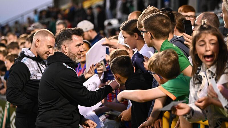 TOP OF THE TABLE CLASH: Shamrock Rovers manager Stephen Bradley signs autographs. Photo by Harry Murphy/Sportsfile
