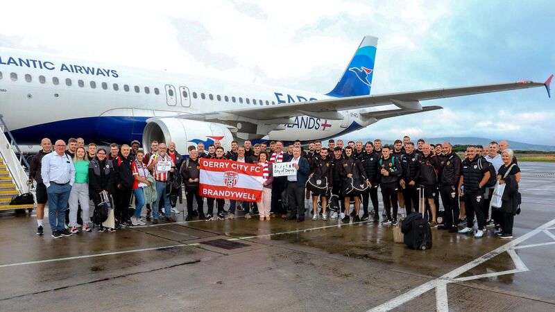 Derry City's chartered aircraft landed in Torshavn early yesterday morning with Ruaidhri Higgins' squad accompanied by fifty supporters.
