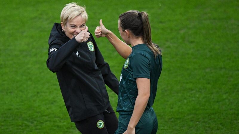 THUMBS UP: Manager Vera Pauw and Katie McCabe during a Republic of Ireland training session at Meakin Park in Brisbane. Pic: Stephen McCarthy/Sportsfile
