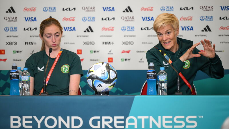 Manager Vera Pauw and Megan Connolly during a Republic of Ireland press conference at Brisbane Stadium in Brisbane, Australia, ahead of their final Group B match of the FIFA Women's World Cup 2023, against Nigeria. Photo by Stephen McCarthy/Sportsfile