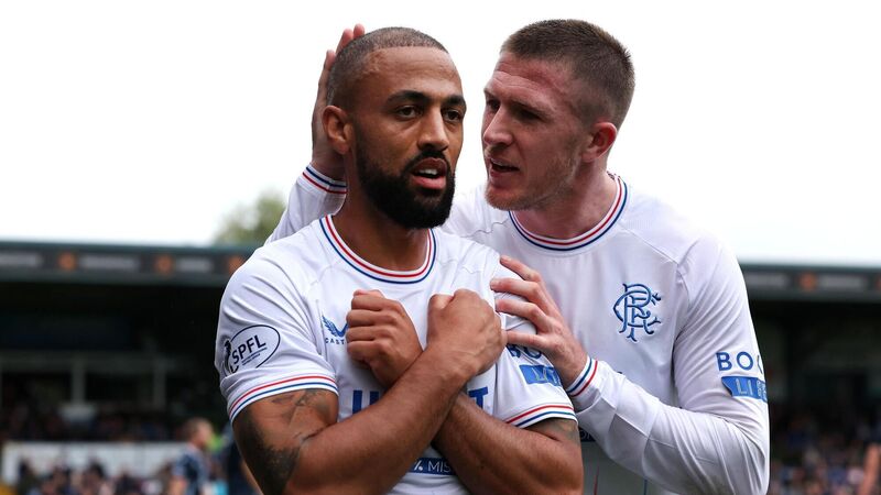 ON THE MARK: Rangers' Kemar Roofe (left) celebrates scoring their side's first goal of the game with team-mate John Lundstram during the cinch Premiership match at the Global Energy Stadium. Pic: Robert Perry/PA Wire