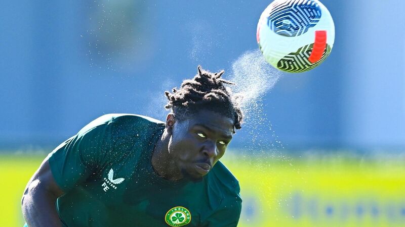 TRICKY TASK: Festy Ebosele during a Republic of Ireland training session at the FAI National Training Centre in Abbotstown, Dublin. Pic: Stephen McCarthy/Sportsfile