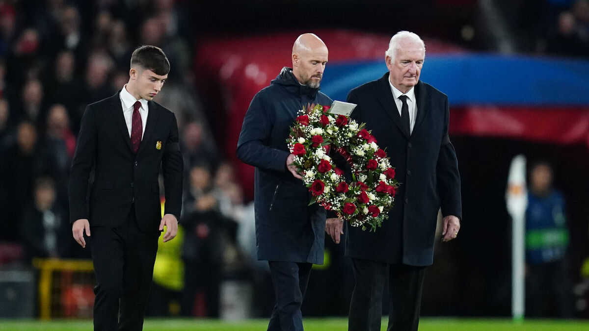 It was, at least before kick-off, from the moment ten Hag, Charlton’s old keeper Alex Stepney and current youth captain Dan Gore — representing the club’s proud youth legacy which started with Charlton and the Busby Babes — strode out and laid a wreath in the centre circle, accompanied by a lone piper, an echo of a tribute paid at the first game following the death of Busby in 1994.