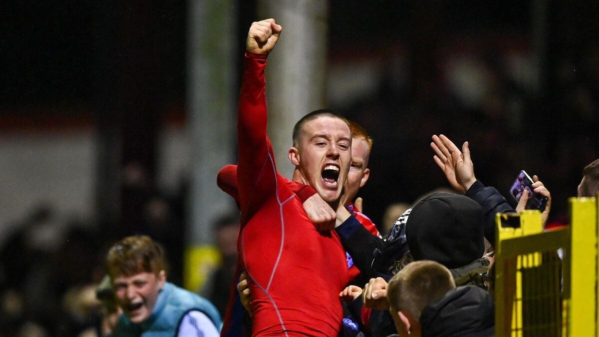 HAT TRICK HERO: Jack Moylan of Shelbourne celebrates his winner. Photo by Tyler Miller/Sportsfile
