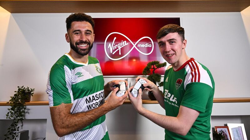 Roberto Lopes of Shamrock Rovers, left, and E Republic of Ireland player Ciaran Walsh.
