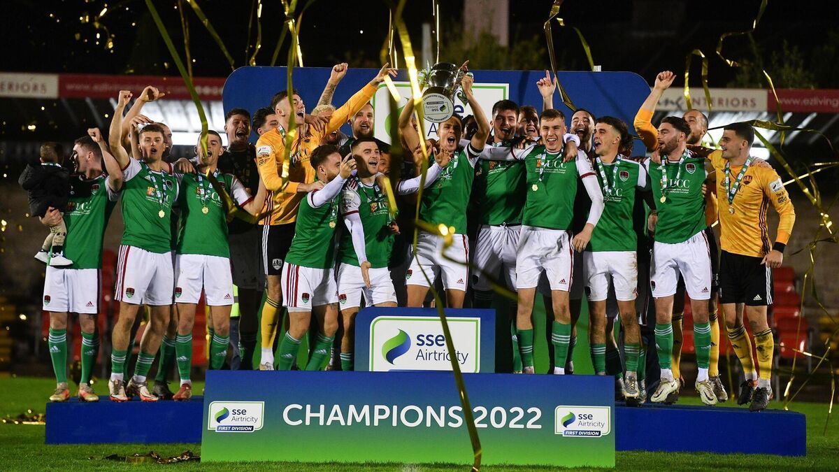 BACK AGAIN: Cork City captain Cian Coleman lifts the First Division title in 2022. Photo by Eóin Noonan/Sportsfile