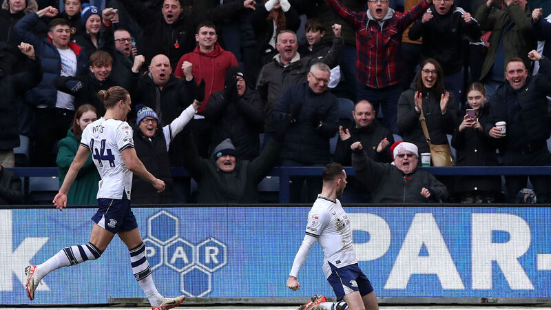 CORKER: Preston North End's Alan Browne celebrates scoring their side's first goal. Photo credit: Tim Markland/PA Wire.