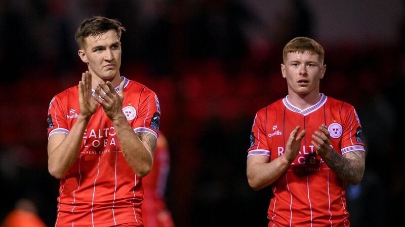 DUFF LOVE: Sean Boyd (left) and Kameron Ledwidge of Shelbourne after Shamrock Rovers game