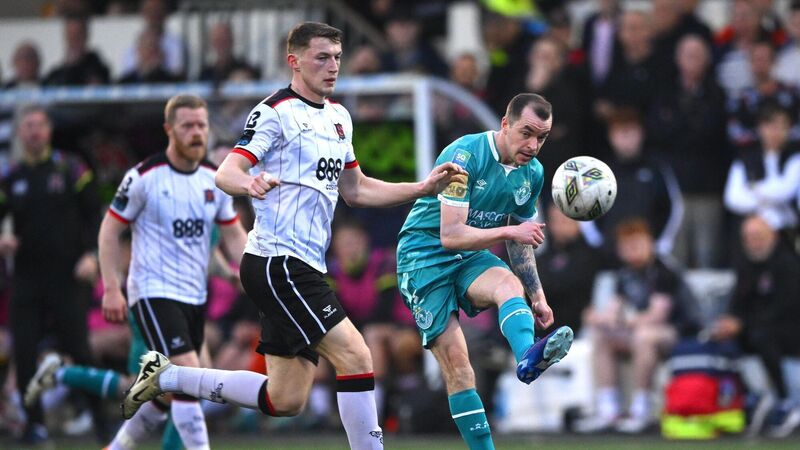 Sean Kavanagh of Shamrock Rovers in action against Zak Bradshaw of Dundalk during the SSE Airtricity Men’s Premier Division match between Dundalk and Shamrock Rovers at Oriel Park in Dundalk, Louth. Pic: Ramsey Cardy, Sportsfile