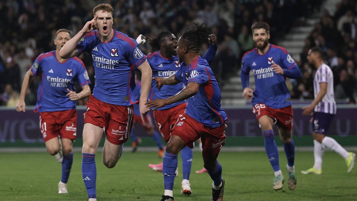 Lyon's Irish defender Jake O'Brien celebrates after scoring against Toulouse.