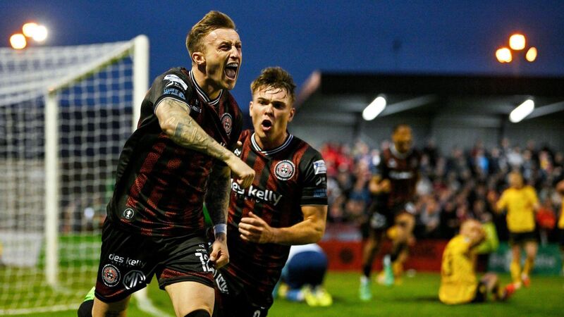 LATE LATE SHOW: Danny Grant of Bohemians, left, celebrates after scoring his side's second and equalising goal during the SSE Airtricity Men's Premier Division match between Bohemians and St Patrick's Athletic at Dalymount Park in Dublin. Photo by Brendan Moran/Sportsfile
