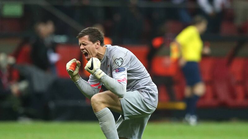 Poland goalkeeper Wojciech Szczesny celebrates.
