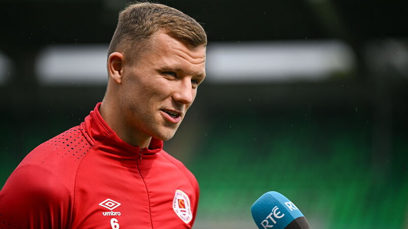 ON THE CUSP: Jamie Lennon is interviewed for RTÉ before a St Patrick's Athletic training session at Tallaght Stadium in Dublin. Pic: Seb Daly/Sportsfile