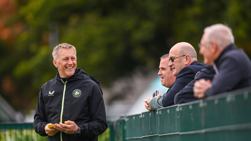 HAVIN' A NATTER: Head coach Heimir Hallgrimsson with members of the media, from left, John Fallon of The Irish Examiner, Philip Quinn of The Irish Daily Mail and Tony O'Donoghue of RTÉ during a Republic of Ireland training session. Pic: Stephen McCarthy/Sportsfile