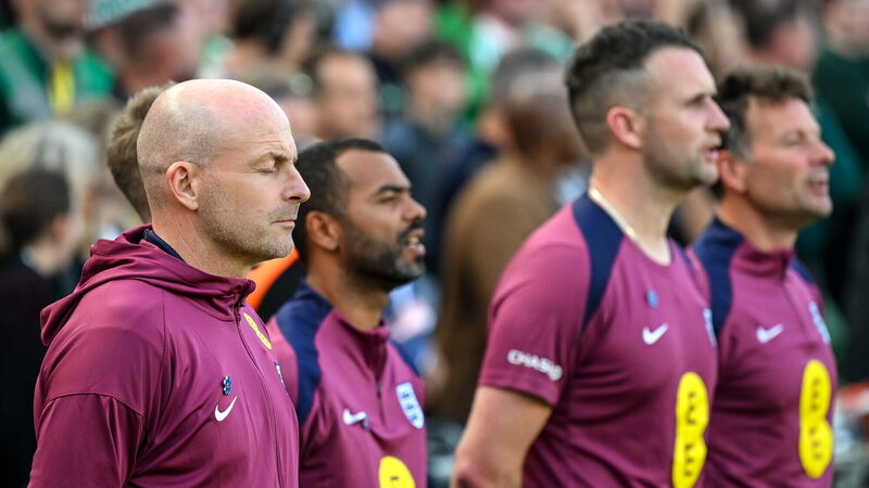 OUT OF TUNE: England interim manager Lee Carsley and his backroom staff In Dublin. PIC: Stephen McCarthy/Sportsfile