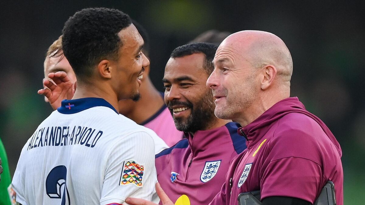 PDA FOR TAA: England interim manager Lee Carsley, right, with Trent Alexander-Arnold of England after the UEFA Nations League B Group 2 match between Republic of Ireland and England at Aviva Stadium in Dublin. Photo by Stephen McCarthy/Sportsfile