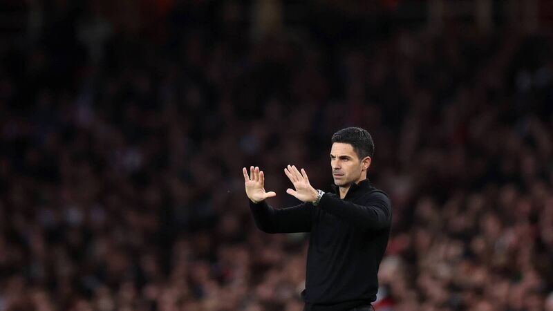 Arsenal boss Mikel Arteta reacts during the Premier League match against Liverpool at Emirates Stadium. (Photo by Alex Pantling/Getty Images)