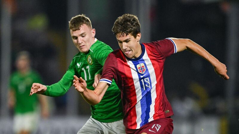 COMING STAR: Eivind Helland of Norway in action against Mark O'Mahony of the Republic of Ireland. Pic: Brendan Moran/Sportsfile