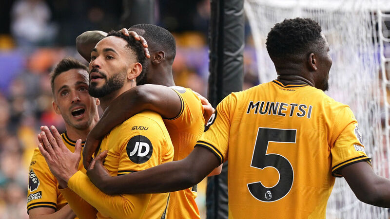 Wolverhampton Wanderers' Matheus Cunha celebrates scoring his side's fourth goal. Photo: Jacob King/PA Wire.Â