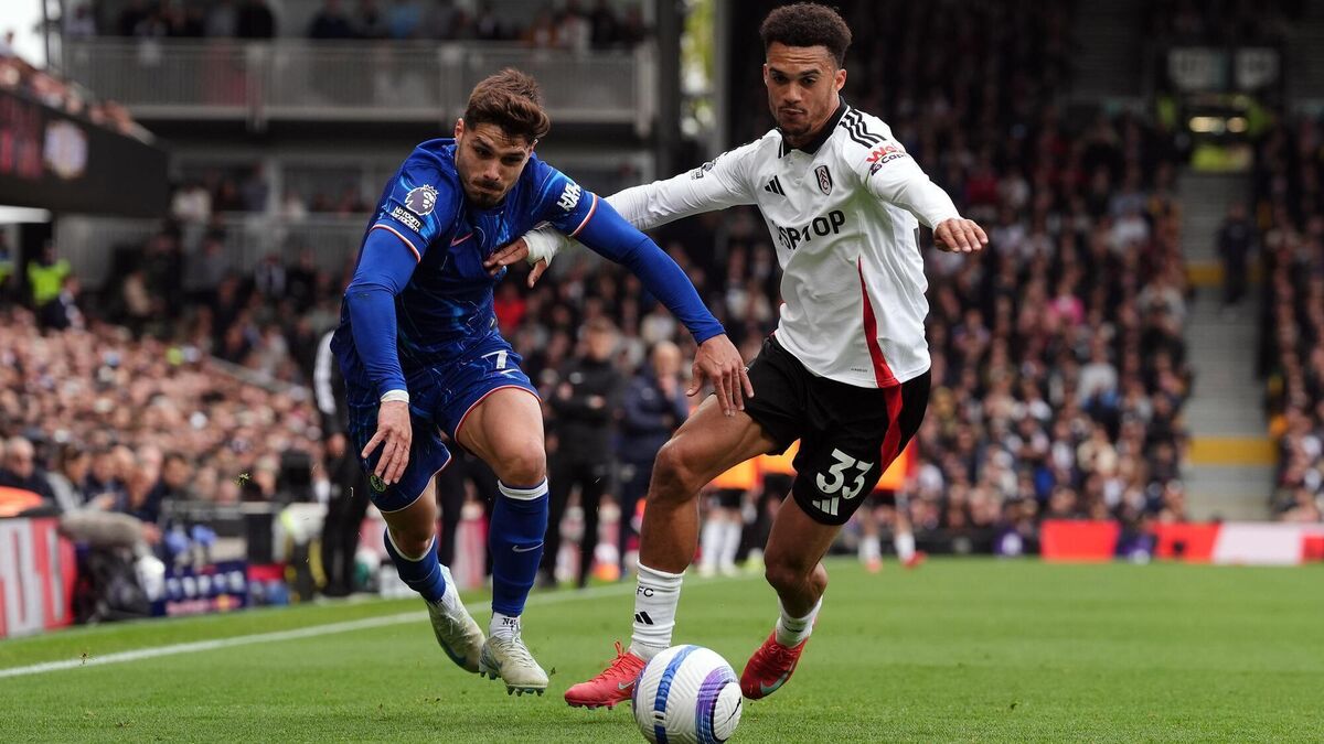 Chelsea's Pedro Neto and Fulham's Antonee Robinson battle for the ball. Pic: Jonathan Brady/PA Wire.