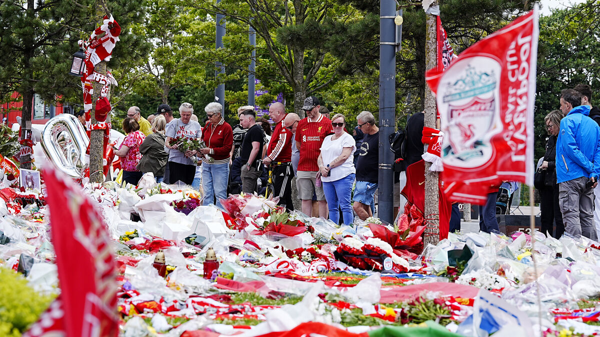A tearful former Liverpool captain and team-mate, Jordan Henderson, was among those present on Friday, laying flowers and taking a moment to read some of the tributes after signing a book of condolence available in the Anfield Road stand.
