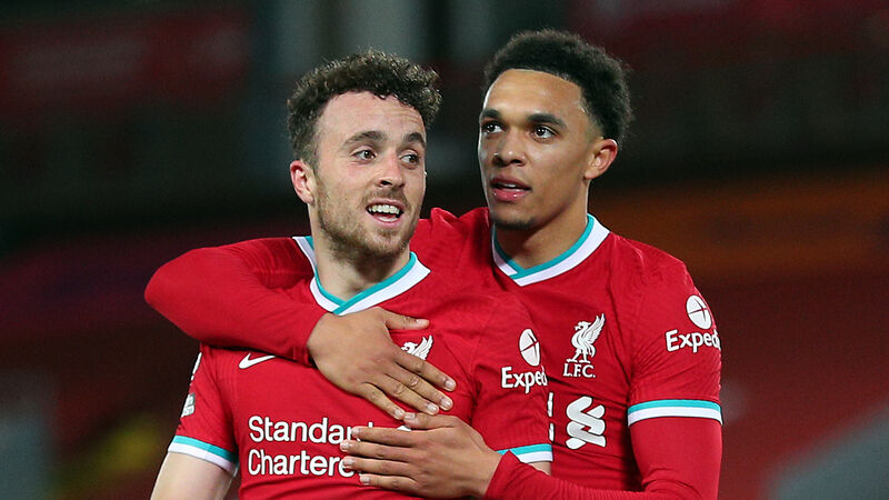 Trent Alexander-Arnold (right) has paid tribute to his former Liverpool team-mate, the late Diogo Jota. Pic; Peter Byrne/PA