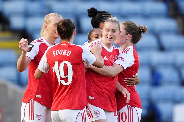 Noemie Mouchon pulled one back for Leicester in the 83rd minute, but 60 seconds later Blackstenius scored her second for Arsenal to record a third straight win in all competitions.