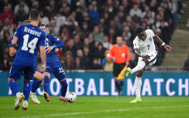 Bukayo Saka got England’s opener at Wembley. Picture: John Walton/PA
