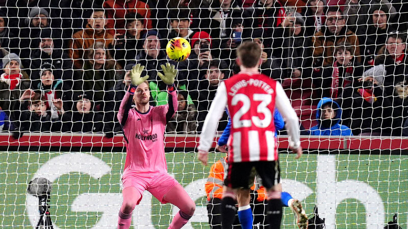 THANK YOU: Sunderland's Enzo Le Fee has a penalty saved by Brentford goalkeeper Caoimhín Kelleher during the Premier League match at Gtech Community Stadium. Picture: John Walton/PA