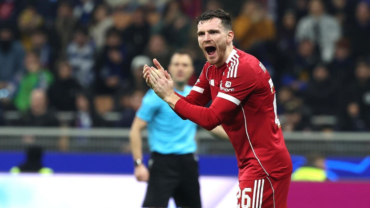 Liverpool defender Andy Robertson puts his hand to his forehead