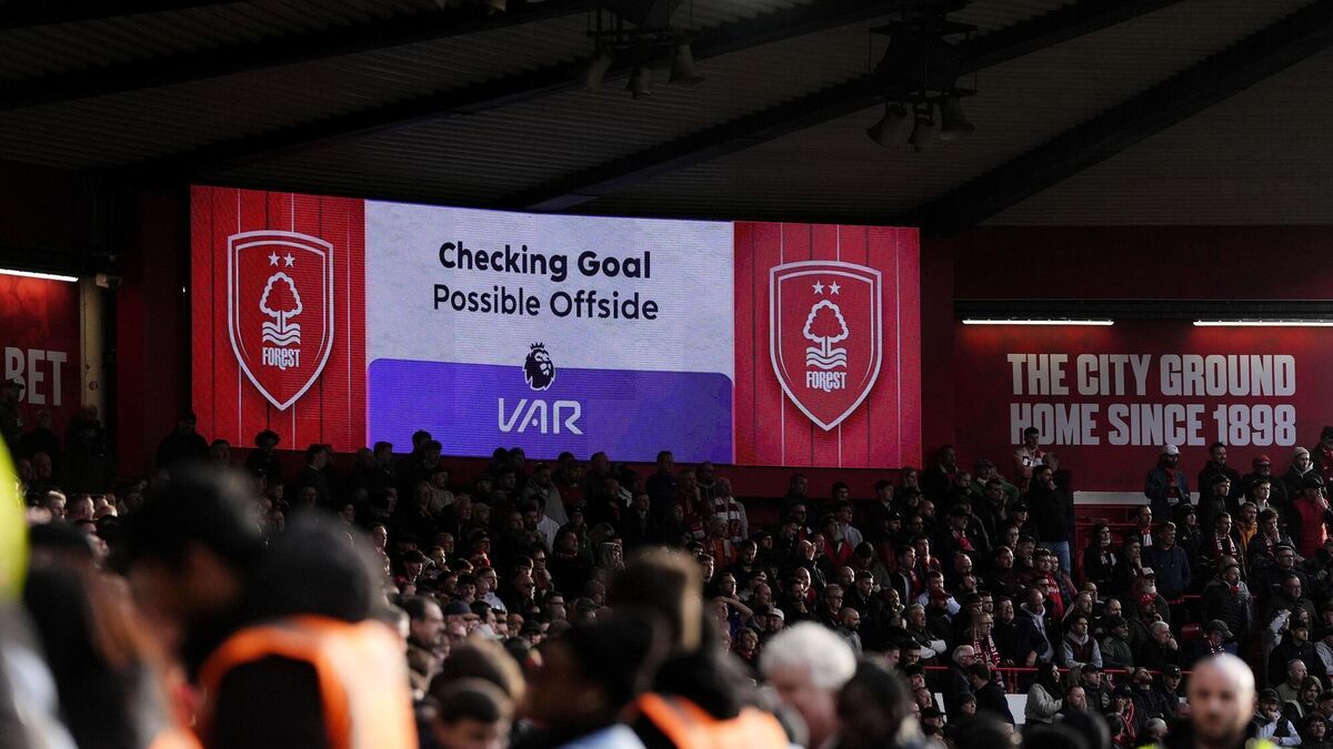 The big screen informing supporters of a VAR check at the City Ground. Pic: Nick Potts/PA