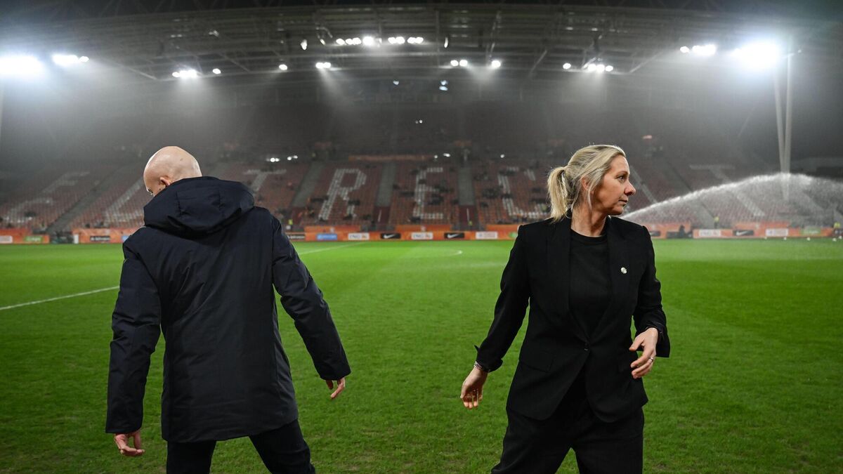 DUTCH DISRESPECT: Republic of Ireland head coach Carla Ward and Netherland's head coach Arjan Veurink before the Women’s World Cup Qualifier. Pic: Stephen McCarthy/Sportsfile