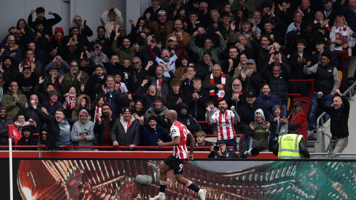 Brentford's Igor Thiago celebrates scoring their side's second goal. Pic: Steven Paston/PA Wire.