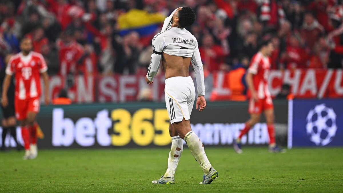 HEY JUDE: Real Madrid's Jude Bellingham reacts during their loss in Munich. Pic: Tom Weller/dpa via AP.