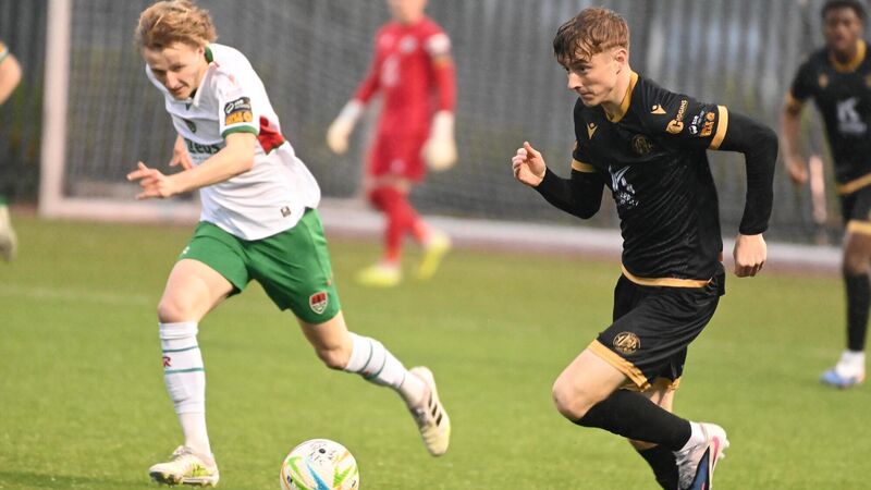 TOUGH TIME: Kerry's Arran Healy takes on Cork City's AJ Bridge during the Grandon's Toyota Munster senior cup at Mayfield Pic: Eddie O'Hare.