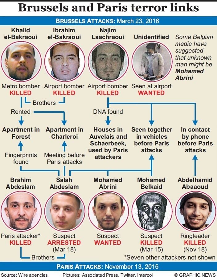 - Belgian prosecutor Frederic Van Leeuw said two Brussels suicide bombers have been identified as brothers Ibrahim El Bakraoui, who struck at the city’s airport, and Khalid El Bakraoui, who struck at a Metro station.