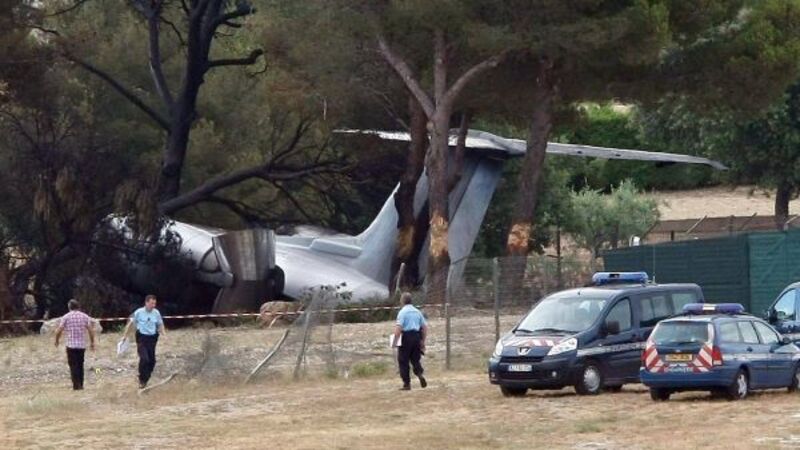 A private plane has caught fire and crashed on landing at Le Castellet airport in southern France, killing the three people on board.