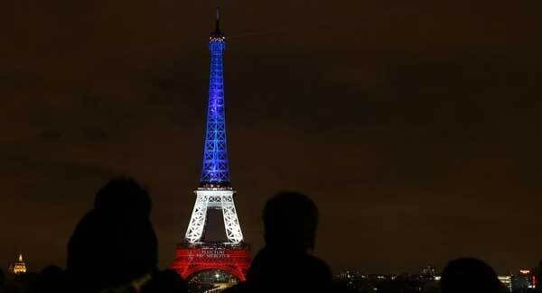 France’s gentle healing process took another step forward tonight as its greatest landmark, the Eiffel Tower, returned to action with a patriotic twist.