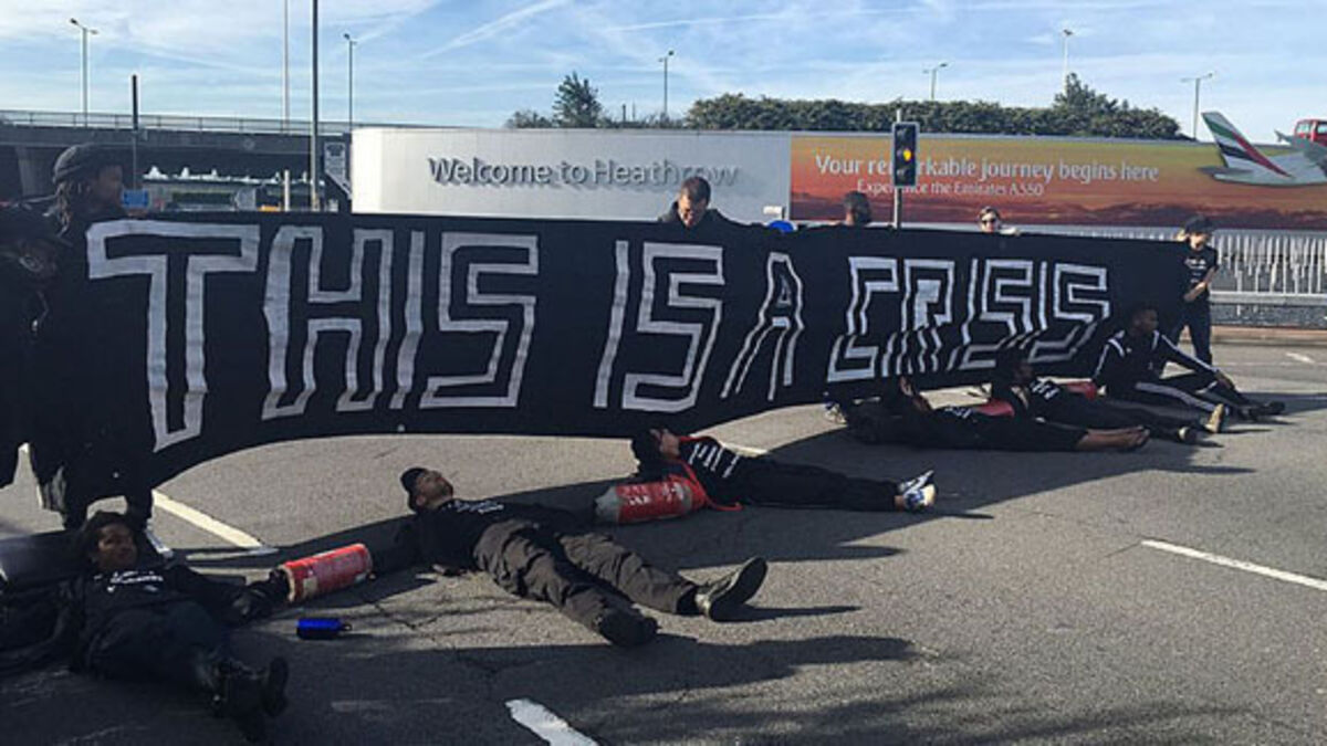 Black Lives Matter protesters lying on the road in England have brought traffic heading to Heathrow airport to a standstill.