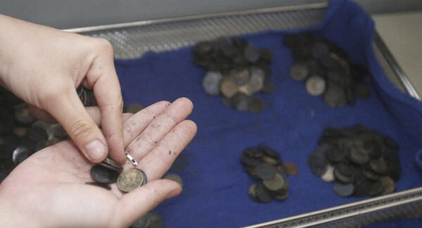 Surgeons needed four hours to remove the money, counting 915 coins of various currencies. Some are still inside, although it is hoped Bank can now pass them naturally.