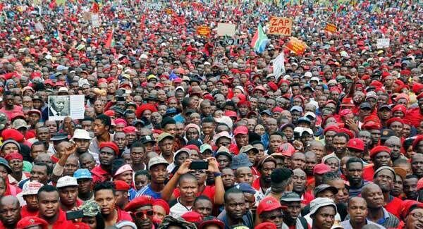 The protest united groups with sharply different ideologies. The Democratic Alliance, the main opposition party, includes many members of the white minority that still controls much of the economy 23 years after the end of apartheid.