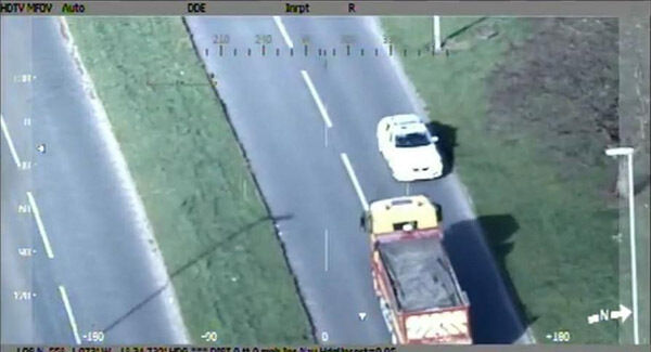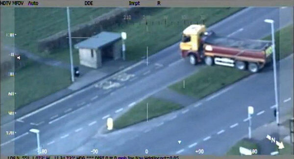 Dramatic police helicopter pictures showed Patrick Denman, 36, driving the wrong way along a dual-carriageway, going through a red light and ended up stuck on a grassed area close to his ex-wife's home in Cramlington, Northumberland.