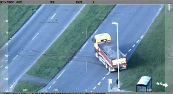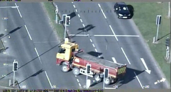 He swerved towards one of them, went left through a red light into a housing estate in Langdale Drive, then immediately on to a grassed area where his truck got stuck.