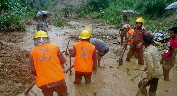 Rains that began early on Monday had cleared by Tuesday, allowing rescuers to work faster in searching for survivors. But the firefighters, police and soldiers deployed to help were having trouble reaching some affected areas, said Reaz Ahmed, a senior disaster management official.