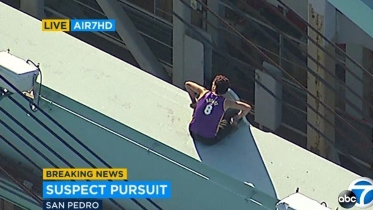 SUBSCRIBEA suspected car thief has died after he fell from a loading crane over the Port of Los Angeles.