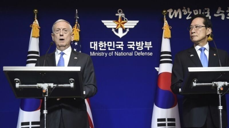 In remarks in Seoul with South Korean Defense Minister Song Young-moo at his side, Mr Mattis accused North Korea of illegal and unnecessary missile and nuclear programs - and vowed to defeat any attack.