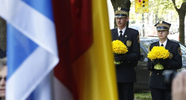 People stopped in the street and officials stood at attention as sirens wailed and church bells tolled at noon in a sign of mourning for the Jews who died fighting, as well as the millions of other Jews murdered in the Holocaust.