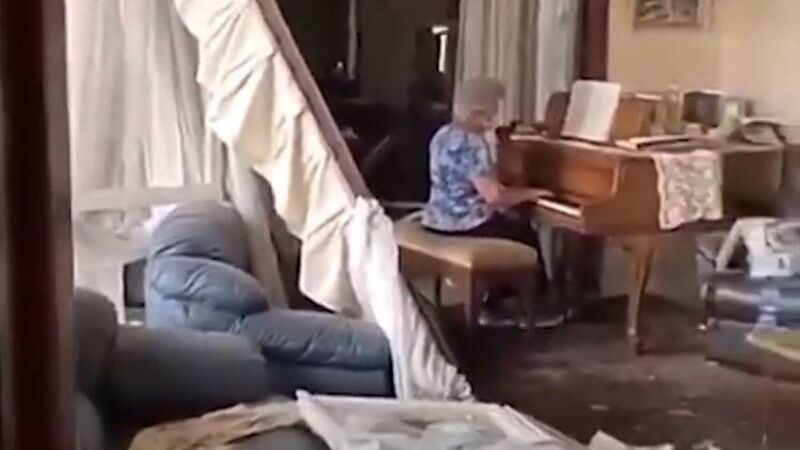 Beirut resident Hoda Melki has tweeted footage of her mother playing Auld Lang Syne on the piano amid the debris of her home after Tuesday's explosion in the city.